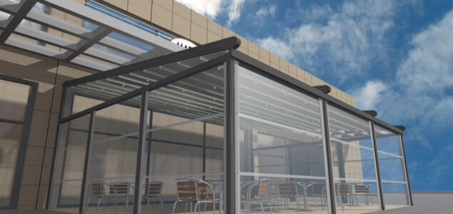 TORBALI GİYOTİN CAM sistemi alüminyum panellerden meydana gelmektedir ve yukarıdan aşağıya doğru dikey bir halde açılıp kapanabilir özelliğine sahiptir.